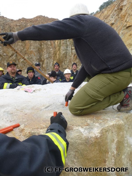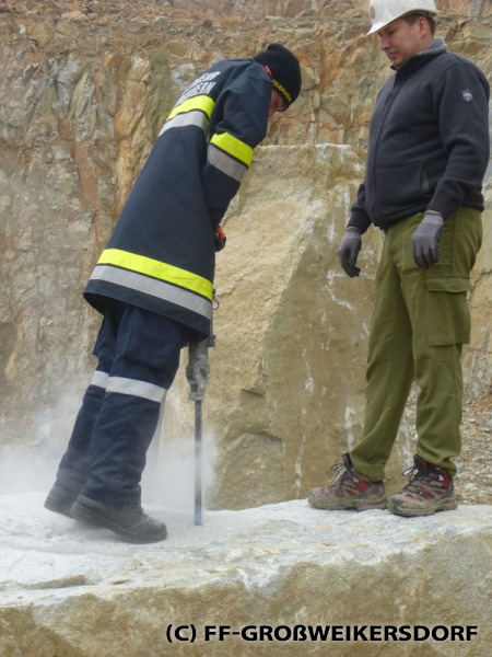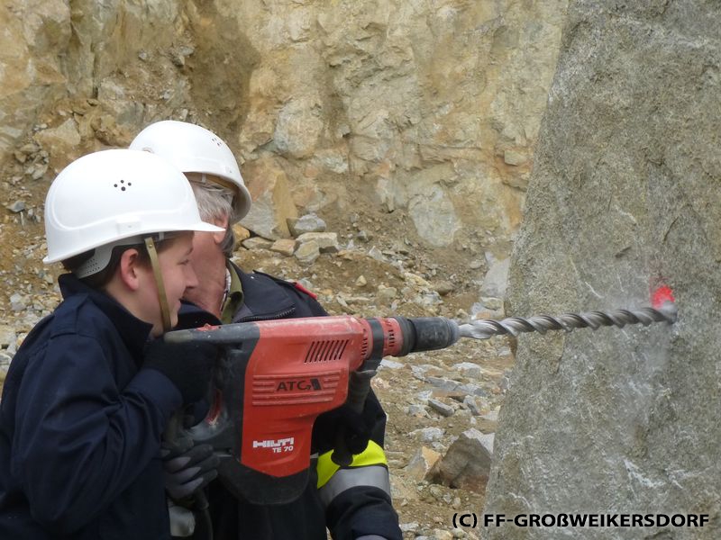 Sprenggruppenkommandant BI Michael Reiterer von der FF Oberdürnbach hieß die Jugendlichen willkommen, und erklärte die Einsatzbereiche der Sprenggruppe. Auf eindrucksvolle Weise, und mit lautem Knall, wurde auf die Gefahren von Sprengstoff aufmerksam gemacht. Die Jugendlichen durften auch selbst Hand anlegen: In zwei für die Übung vorbereitete Felsen mussten Löcher gebohrt werden, um darin die Sprengladungen zu deponieren. Die Sprengung wurde von den Experten der Sprenggruppe durchgeführt, und aus sicherer Entfernung beobachtet. Großen Dank gilt FT Ing. Josef Gratz für die Organisation.