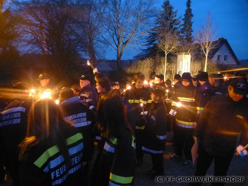 Die Bezirks-Weihnachtsfeier der Feuerwehrjugend fand dieses Jahr in Ollern statt. Sämtliche Feuerwehrjugendgruppen versammelten sich, und Marschierten anschließend zum Florianibildstock am Ollerner Ortsrand.