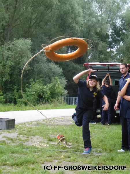 Dieses Jahr besteht für die Mitglieder der Feuerwehrjugend die Möglichkeit das Fertigkeitsabzeichen „Wasserdienst“ zu erwerben. Mangels Feuerwehrzille und entsprechendem Gewässer, traf man sich gemeinsam mit anderen Feuerwehren in Altenwörth für die Vorbereitungen.