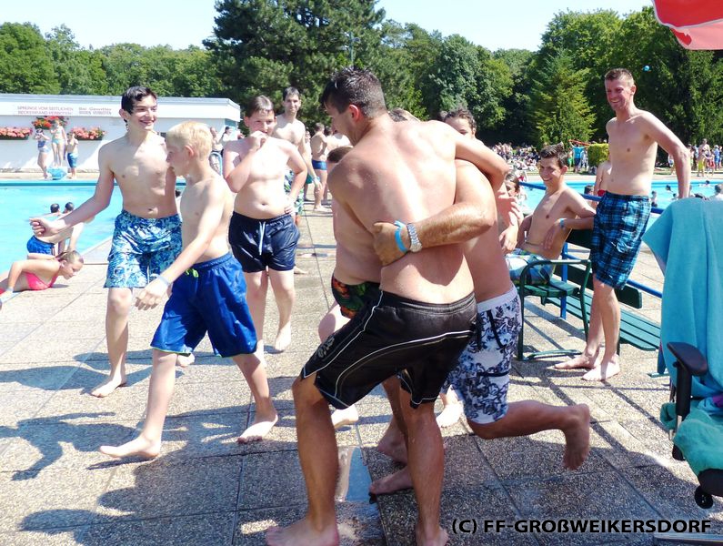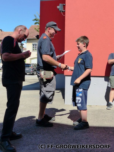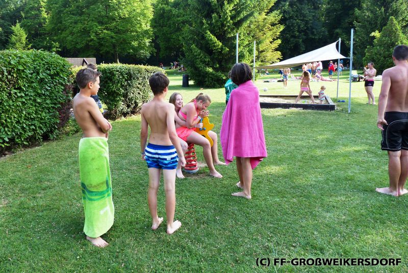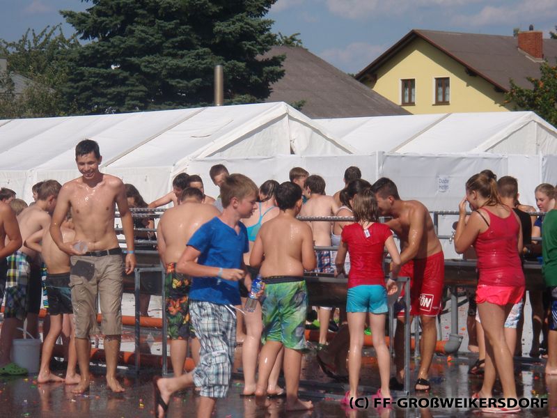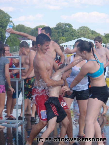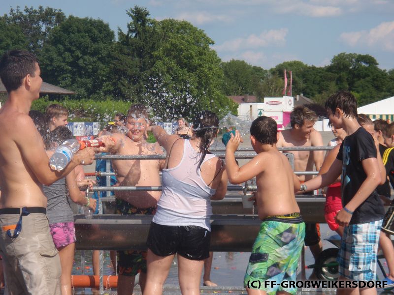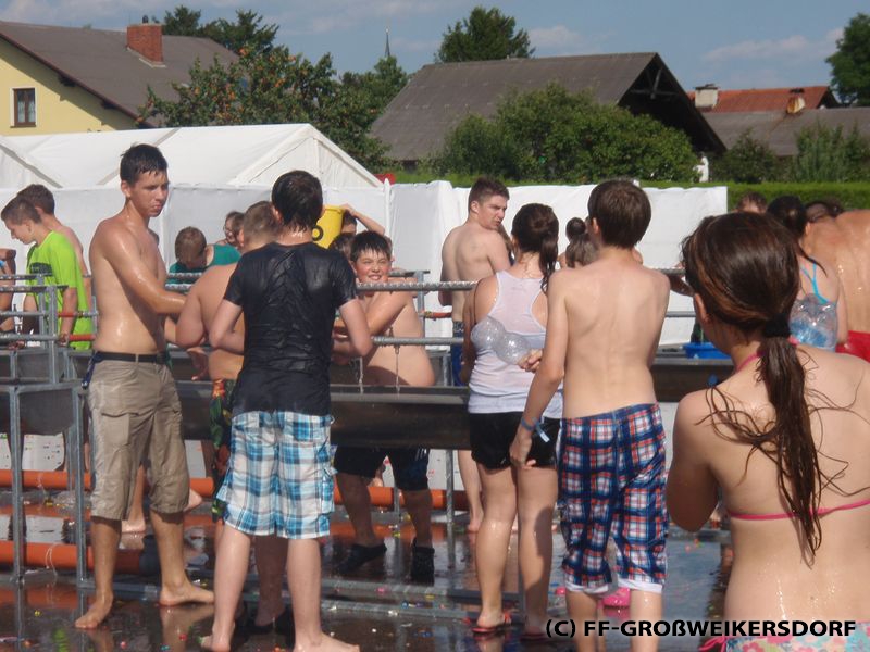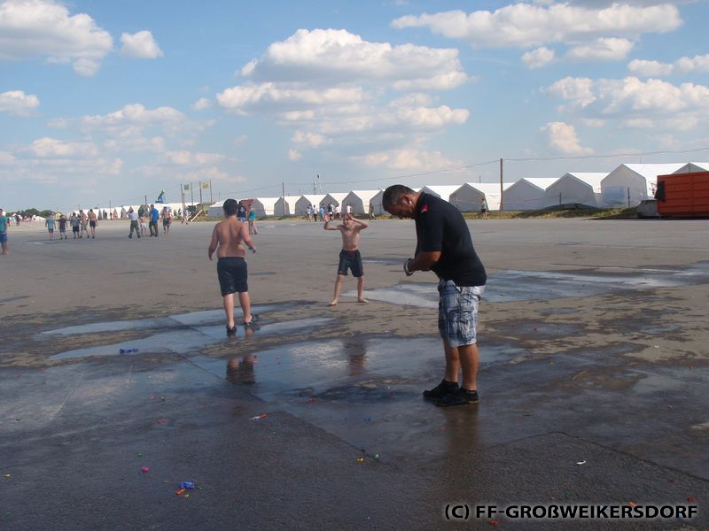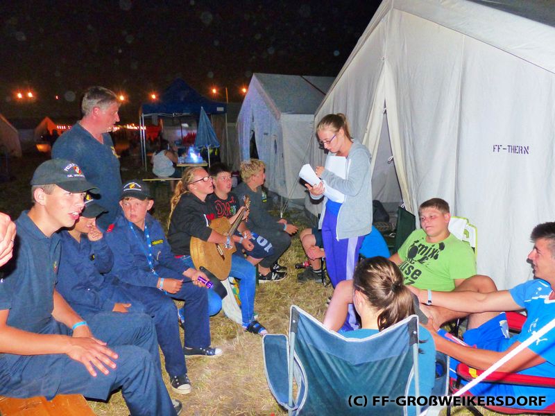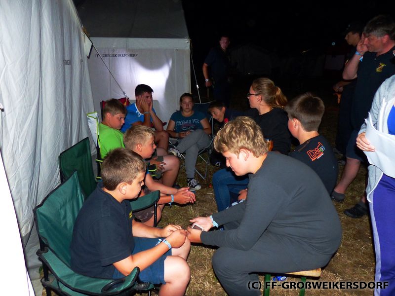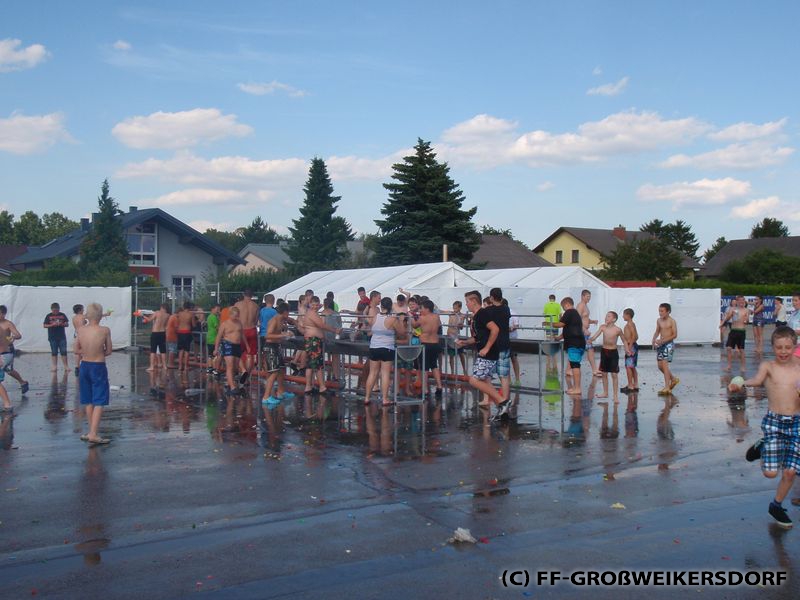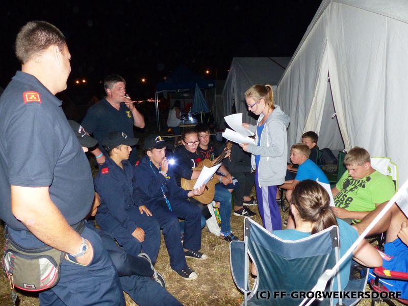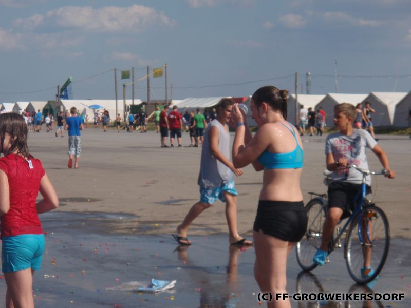 Nach dem Mittagessen konnten die Jugendlichen unter 12 Jahren beim Einzelbewerb ihre Schnelligkeit beweisen. Anschließend wurde bei den hohen Temperaturen eine Wasserschlacht veranstaltet, bei der auch so mancher Betreuer nicht verschont blieb. Um 20:45 Uhr wurde das Lager durch den Landesfeuerwehrkommandant offiziell eröffnet, und danach noch einige schöne Stunden am Lagerfeuer verbracht.