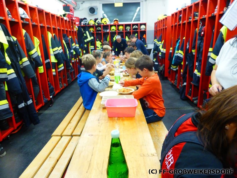 Nachdem die Fahrzeuge im Feuerwehrhaus wieder einsatzbereit waren, gab es Mittagessen für die fleißigen Kämpfer. Zusammen wurde das Nachtlager abgebaut, die Jugendlichen wurden nach einem aufregenden Tag nachhause entlassen.