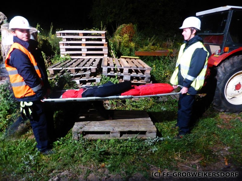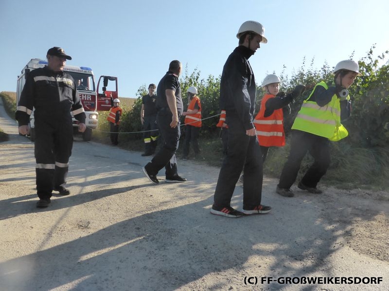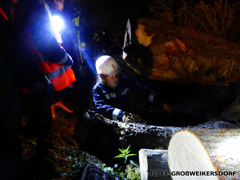 Ein Spaziergänger kam nach seinem täglichen Spaziergang nicht zurück. Bei einem Sammelplatz wurde die Feuerwehrjugend in 4 Gruppen eingeteilt und jede Gruppe suchte ihnen zugeteilte Straßen, Feldwege und Waldstücke nach der vermissten Person ab. Rasch konnte eine verletzte Person gefunden, und durch hervorragende Zusammenarbeit gerettet werden.