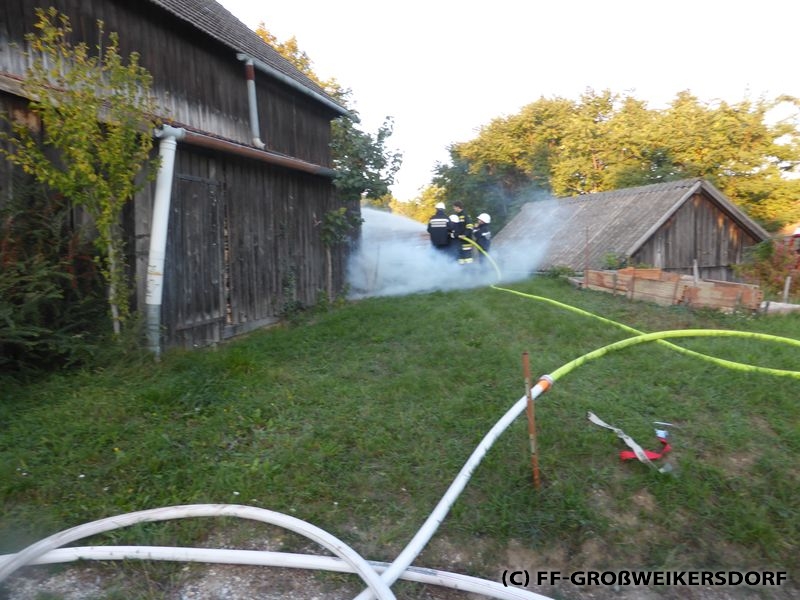 Auf einem Privatgrundstück war ein Holzlager in Brand geraten. Am Einsatzort eingetroffen, wurde die Einsatzstelle großräumig abgesperrt. Anschließend wurde mit den Löscharbeiten begonnen und eine Wasserversorgung hergestellt.